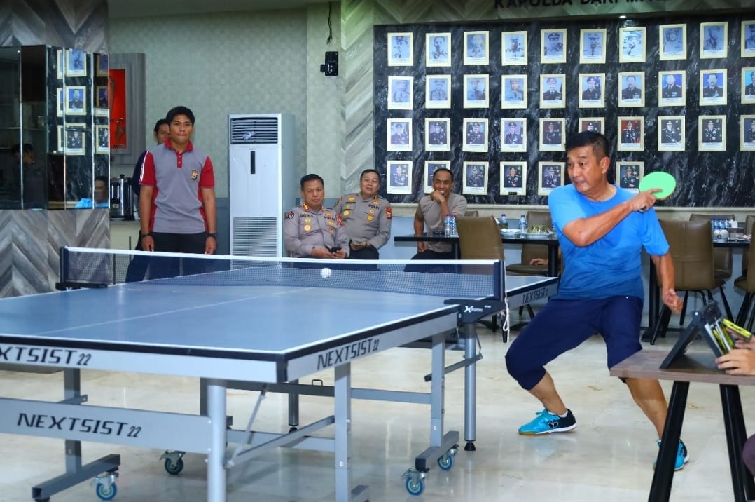 Makassar – Dalam rangka memeriahkan Hari Bhayangkara ke-79, Kepolisian Daerah Sulawesi Selatan (Polda Sulsel) menggelar pertandingan tenis meja antar Pejabat Utama (PJU) dan Satuan Kerja (Satker) di lingkungan Polda Sulsel. Kegiatan ini berlangsung meriah pada Kamis (26/06/2025) di Mapolda Sulsel.