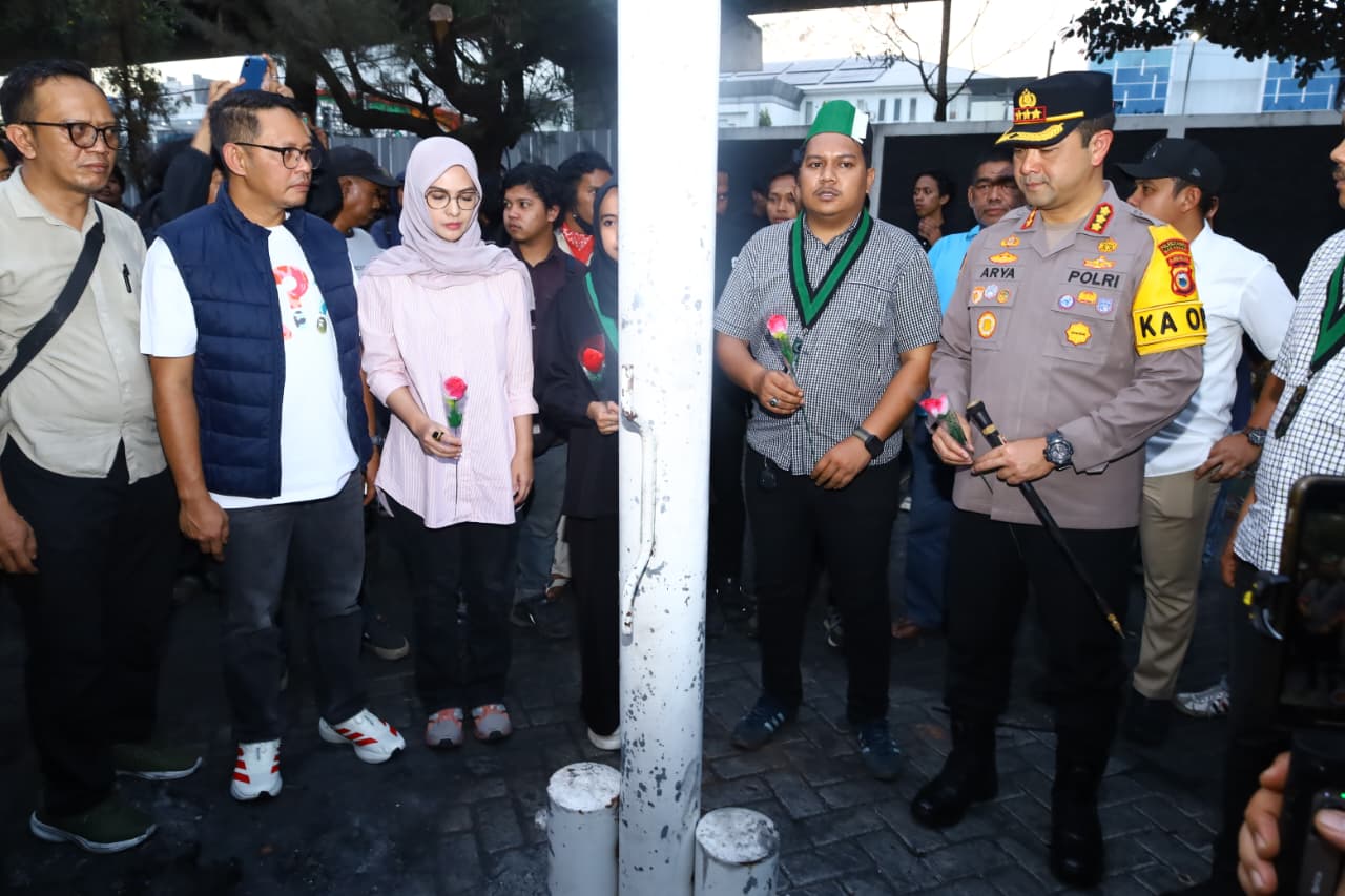 Makassar – Kapolrestabes Makassar Kombes Pol Arya Perdana, SH, SIK, M.Si bersama Ketua DPRD Provinsi Sulsel Drg. Andi Rahmatika Dewi, Ketua DPRD Kota Makassar Supratman, serta Himpunan Mahasiswa Islam (HMI) Badko Sulselbar melaksanakan sholat ghoib di Kantor DPRD Kota Makassar, Jalan A.P Pettarani, Rabu (3/9/2025).