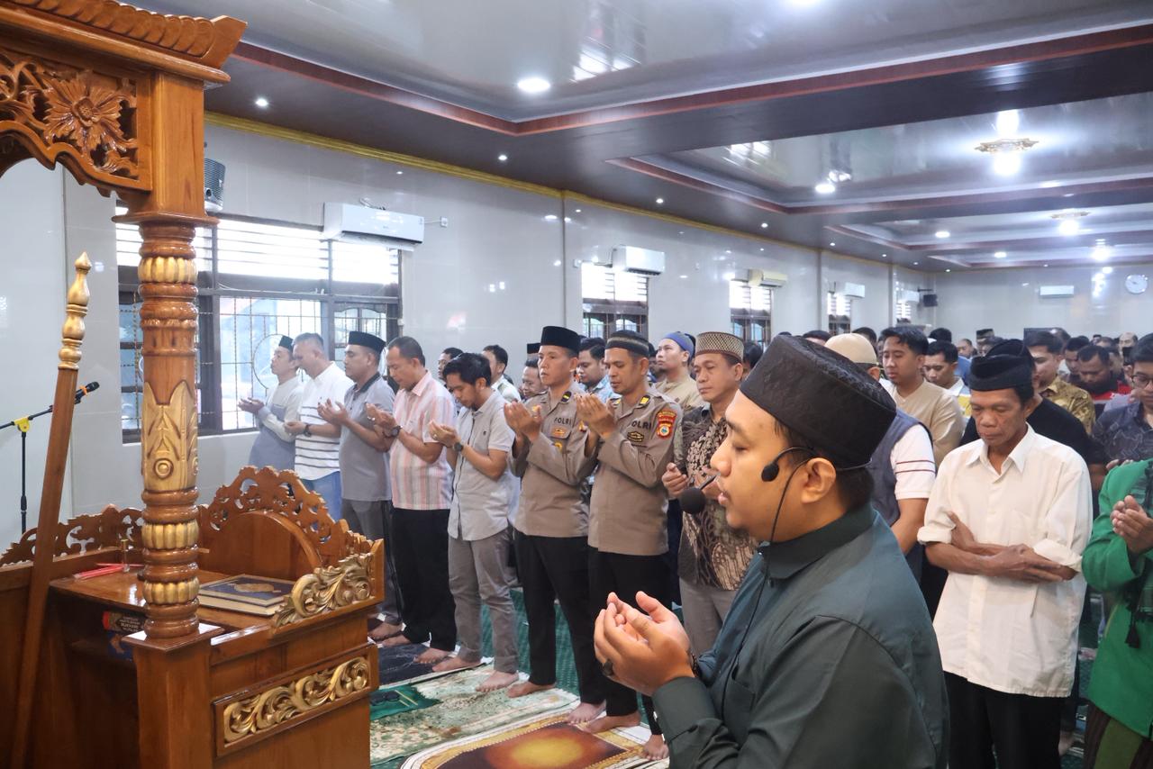 Shalat ghoib dipimpin oleh Ustaz Sabir dan diikuti oleh jajaran personel Polrestabes Makassar dan jamaah masjid sebagai bentuk doa dan empati mendalam atas musibah yang menimpa para korban.