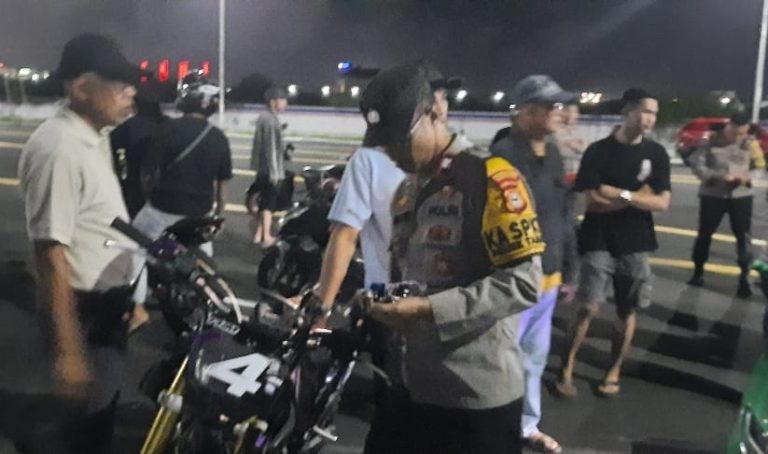MAKASSAR – Polsek Tamalate Polrestabes Makassar yang dipimpin oleh Kapolsek Tamalate, Kompol H. Muh. Thamrin, S.E., M.M., melakukan penertiban balap liar dan penggunaan knalpot brong di kawasan Center Point of Indonesia (CPI), Sabtu malam (24/01/2026).