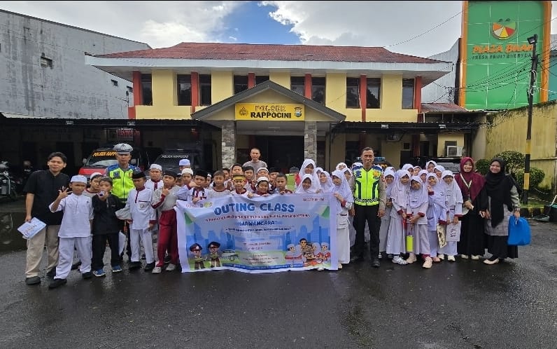 Makassar – Personel Satuan Lalu Lintas (Sat Lantas) Polsek Rappocini Polrestabes Makassar memberikan sosialisasi tertib berlalu lintas kepada siswa-siswi SD Islam Ar Raafi. Kegiatan tersebut dilaksanakan di Markas Komando (Mako) Polsek Rappocini, Jumat (06/02/2026).