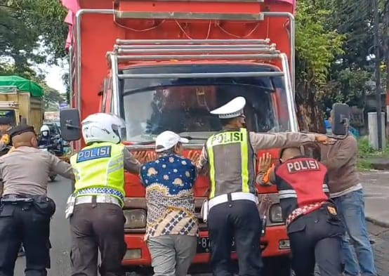 Saat itu, petugas melihat sebuah truk berhenti di badan jalan karena mengalami kerusakan mesin, yang berpotensi menimbulkan kemacetan arus kendaraan.
