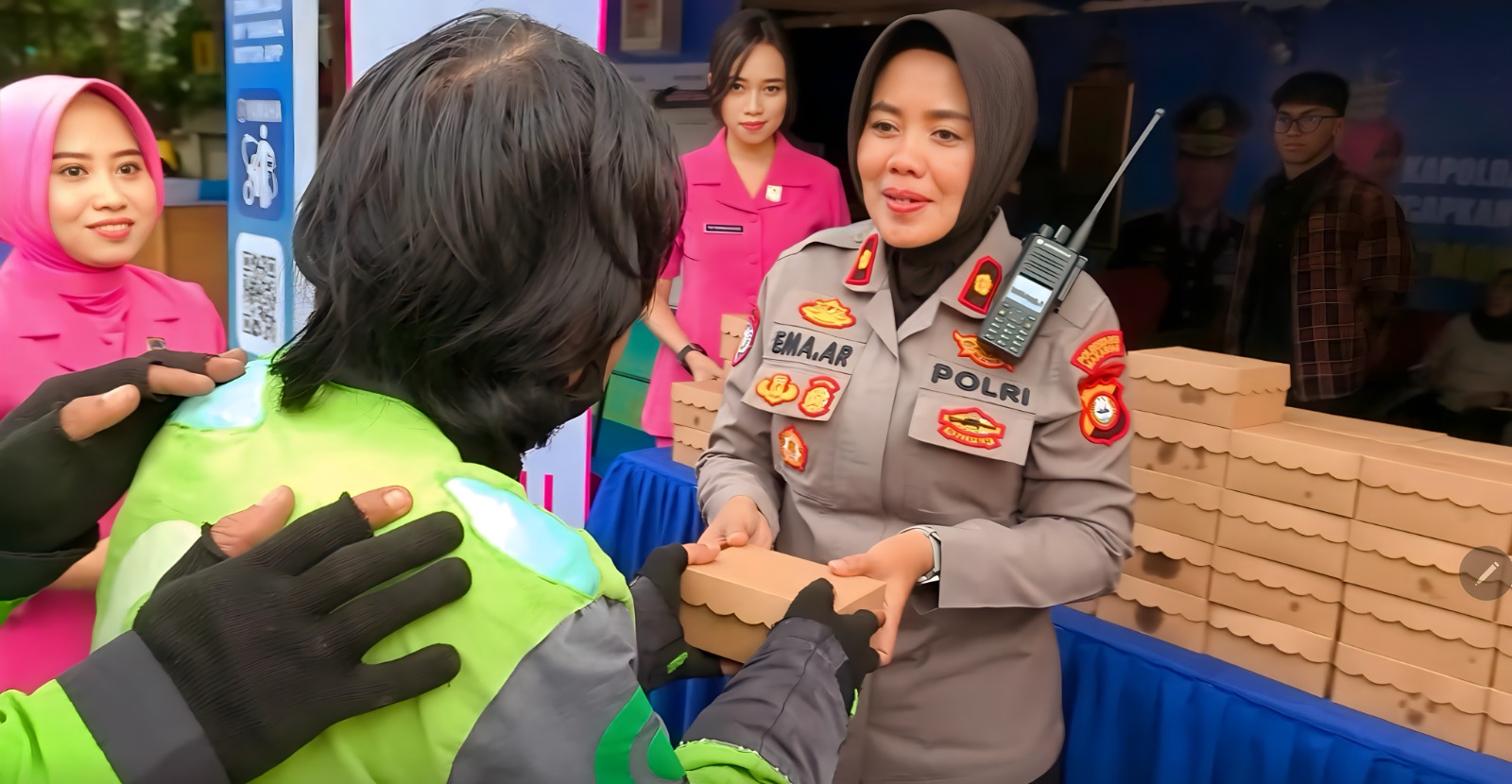 Sebanyak 100 paket takjil berisi aneka kue dibagikan kepada pengendara roda dua maupun roda empat yang melintas. Aksi ini menjadi bagian dari upaya Polri untuk hadir di tengah masyarakat dalam suasana penuh keberkahan.