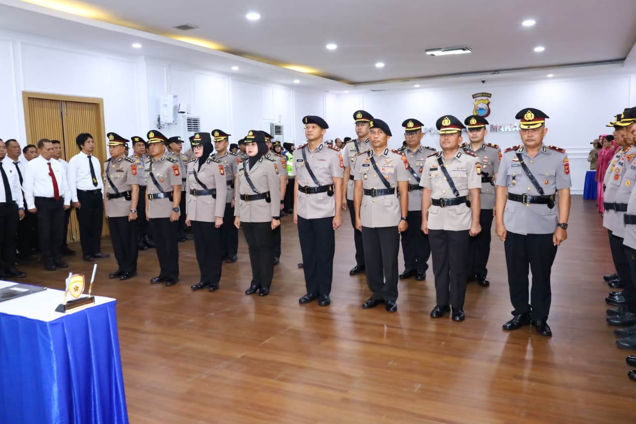 Makassar – Kapolrestabes Makassar, Kombes Pol Arya Perdana, SH., SIK., M.Si memimpin upacara serah terima jabatan (sertijab) sejumlah pejabat utama dan kapolsek jajaran di Aula Mappaoddang Polrestabes Makassar, Senin (13/6/2026).